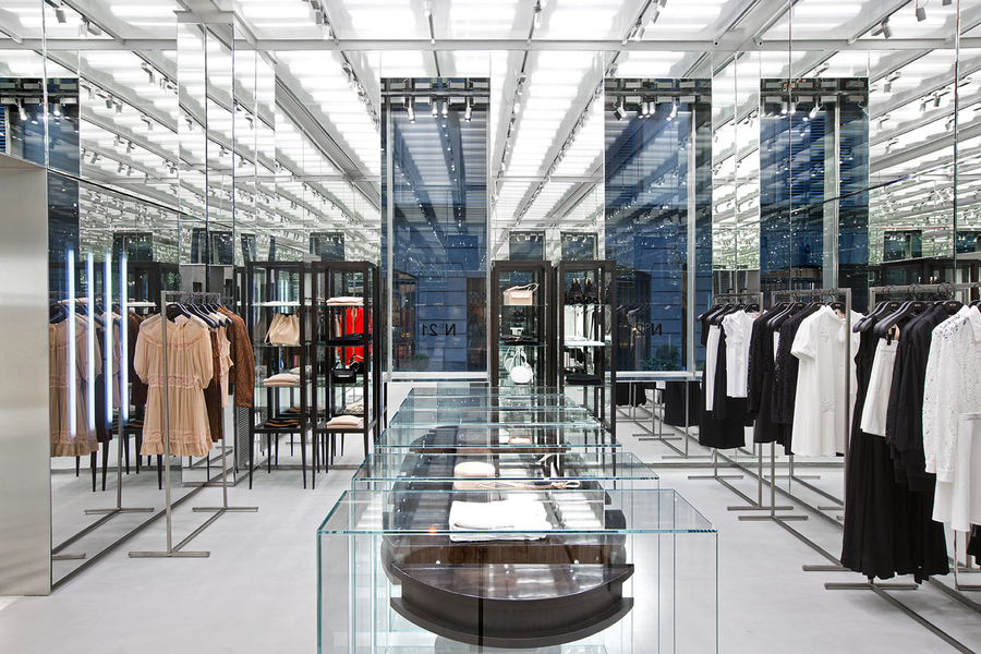 This space stands as an architectural extension of the N°21 brand, embodying its edgy, understated style and honoring Milan’s rich cultural and architectural legacy.